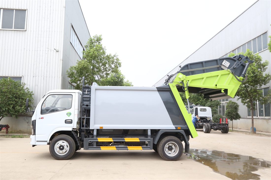 上裝配置:垃圾箱容積:6方,新款平面弧形廂體,廂體材料為武鋼優(yōu)質(zhì)碳鋼,PLC一鍵操作**,手電一體操作模式,兩側(cè)雙電控,帶駕駛室內(nèi)操作,底板支撐加強(qiáng),雙向壓縮,開放式易清潔污水箱。壓縮式垃圾車采用機(jī)電液一體化技術(shù),借助機(jī)、電、液聯(lián)合自動(dòng)**系統(tǒng)、電腦**、手動(dòng)操作系統(tǒng),通過填裝器和推鏟等專用裝置,實(shí)現(xiàn)垃圾倒入、壓碎或壓扁、強(qiáng)力裝填,把垃圾擠入車廂并壓實(shí)和推卸,污水全部進(jìn)入污水廂,解決了垃圾運(yùn)輸過程中的二次污染的問題。壓縮式垃圾車具有自動(dòng)反復(fù)壓縮以及蠕動(dòng)壓縮功能,壓縮比高、密封性好、裝載量大﹑操作方便、環(huán)保性好﹑整車?yán)霉β矢叩葍?yōu)點(diǎn)。作業(yè)自動(dòng)化,垃圾收集方式簡(jiǎn)便、高效。后翻轉(zhuǎn)機(jī)構(gòu)選裝:1、掛塑料桶式翻轉(zhuǎn)機(jī)構(gòu);2、掛鐵桶式翻轉(zhuǎn)機(jī)構(gòu);3、擺臂式翻轉(zhuǎn)機(jī)構(gòu); 4、簸箕斗式翻轉(zhuǎn)機(jī)構(gòu)。