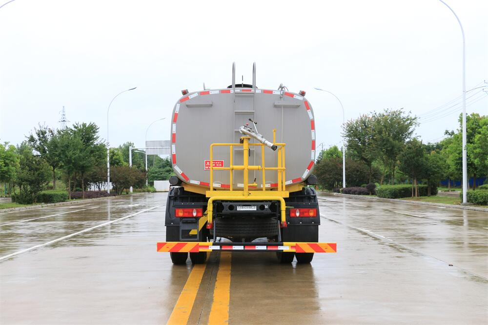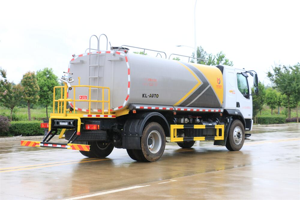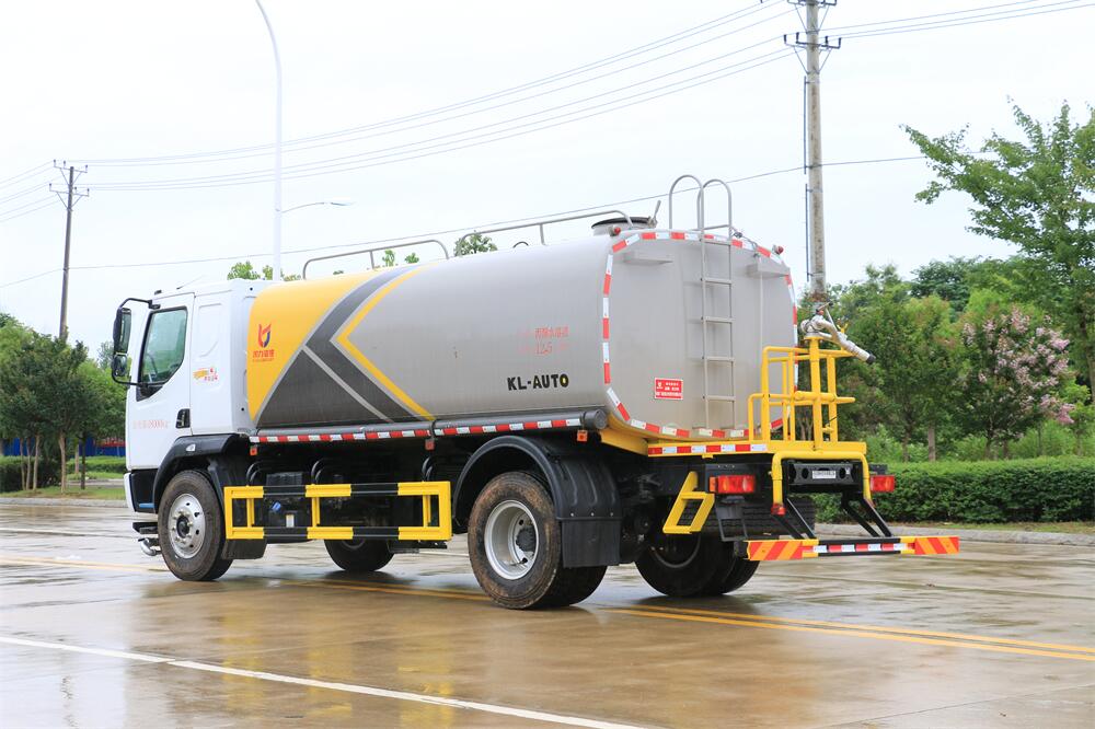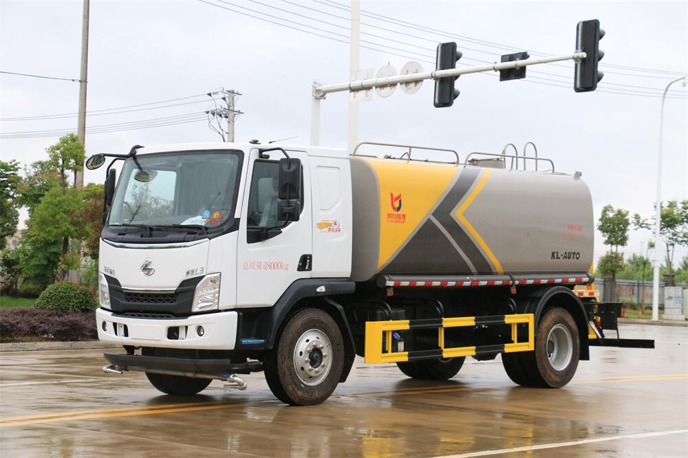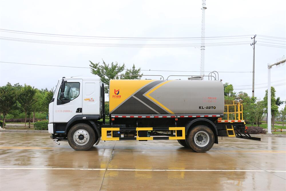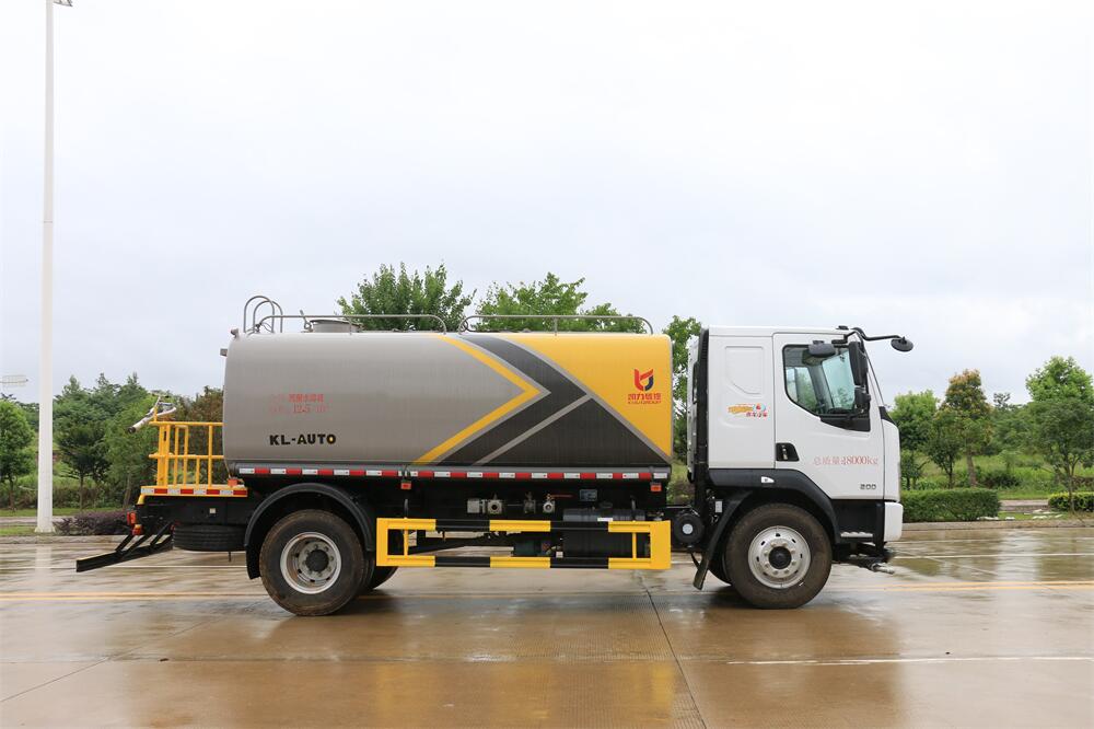 灑水車前裝有鴨形噴嘴或圓頭沖嘴,后面裝有圓柱開灑水噴嘴或蓮蓬頭噴嘴,后部有一工作平臺,裝配有水炮。后部還可裝8個噴嘴(選裝)。