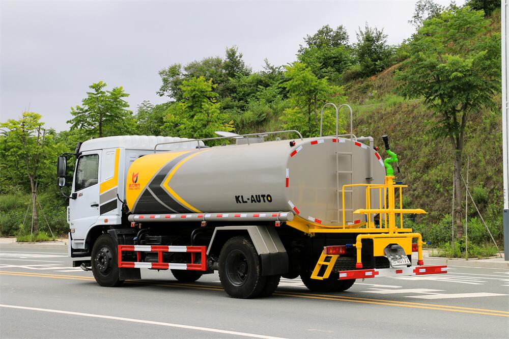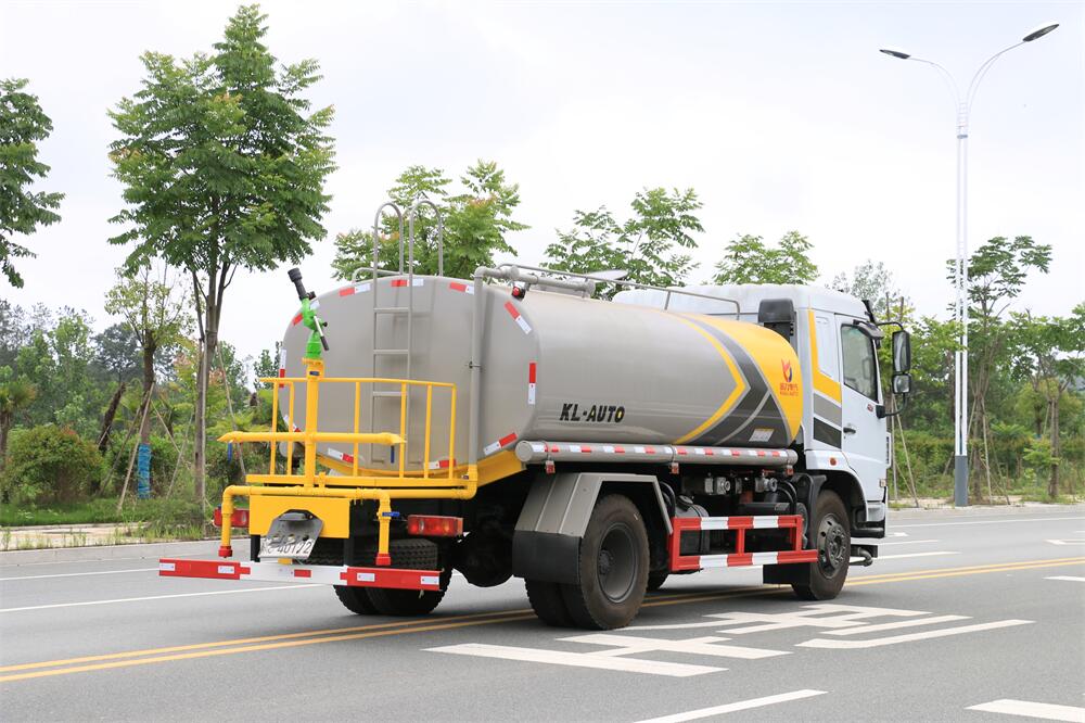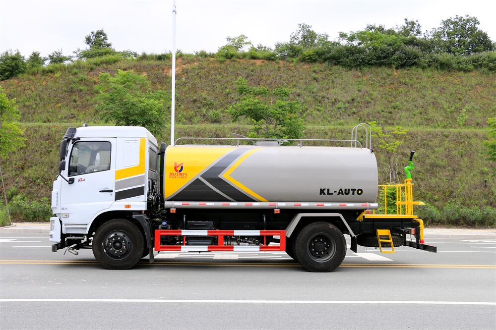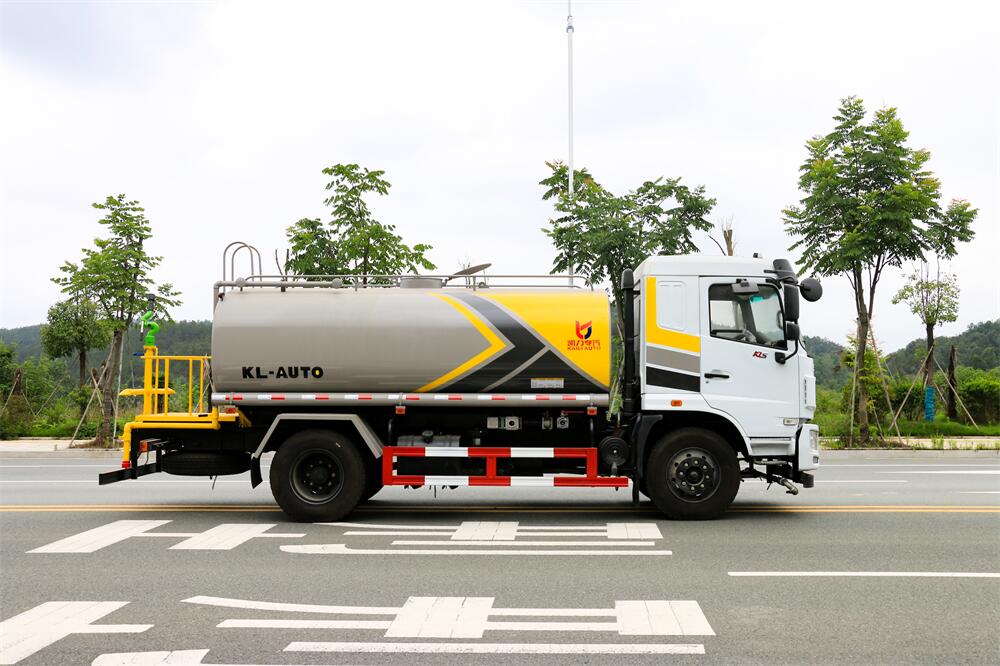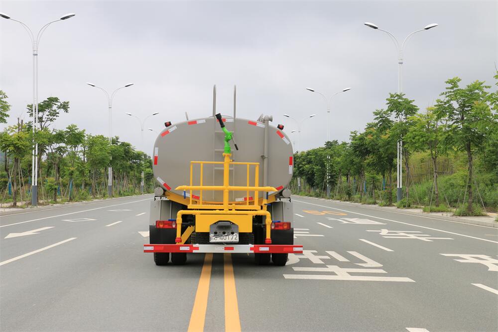 灑水車前裝有鴨形噴嘴或圓頭沖嘴,后面裝有圓柱開灑水噴嘴或蓮蓬頭噴嘴,后部有一工作平臺,裝配有水炮。后部還可裝8個噴嘴(選裝)。