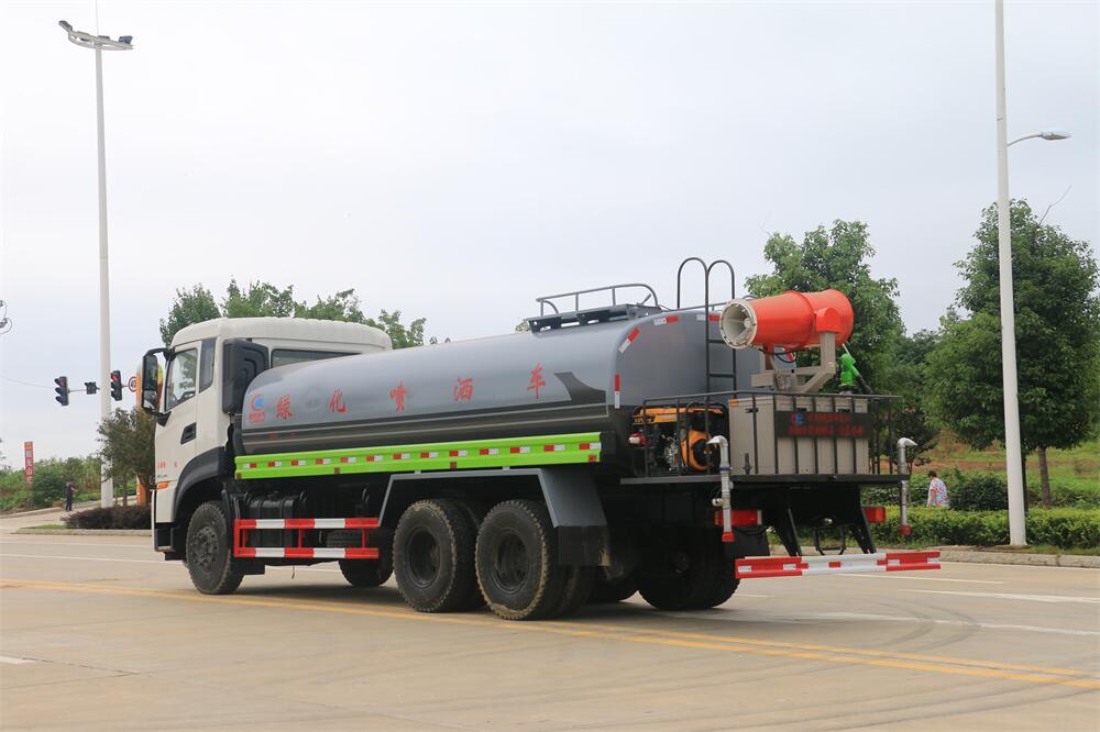 上裝配置:罐體容積 18-20立方,風送式霧炮機組30米,40米選擇,罐體采用國標Q235碳鋼材質,罐體厚度4MM,前后封頭5MM加厚型,罐體內雙層隔板具有防波蕩作用,以減輕汽車行駛時罐內液體沖擊;灑水車整車及外形尺寸嚴格按照**機動車公告制作而成;裝配大功率專用灑水泵,前沖、后灑、側噴、后平臺帶綠化灑水炮,灑水炮可全方位旋轉,可連續調成直沖狀、大雨、小雨、毛毛雨;配消防接口,自流閥,濾網,帶自吸自排功能。前封頭帶水位計,后平臺主管路帶1寸澆花接口,后爬梯,帶1個消防接頭,帶1個自流閥,1個過濾裝置,其余標配。