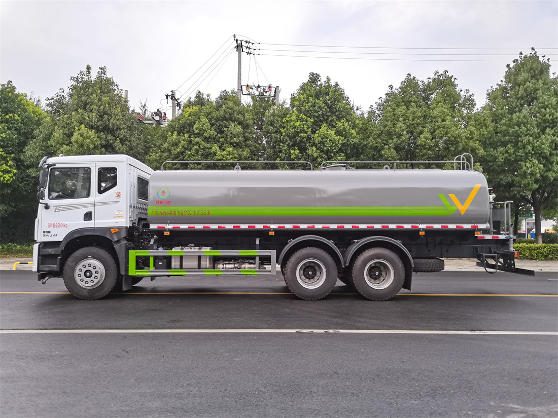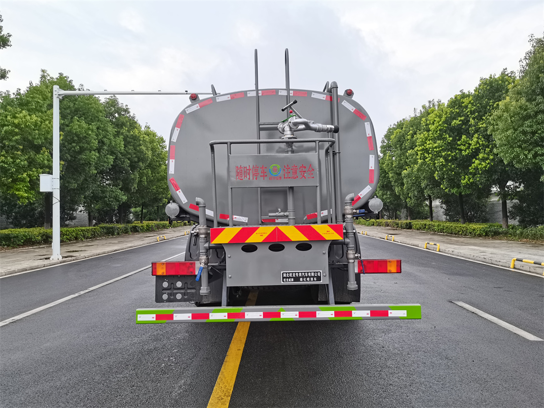 灑水車前裝有鴨形噴嘴或圓頭沖嘴,后面裝有圓柱開灑水噴嘴或蓮蓬頭噴嘴,后部有一工作平臺,裝配有水炮。后部還可裝8個噴嘴(選裝)。