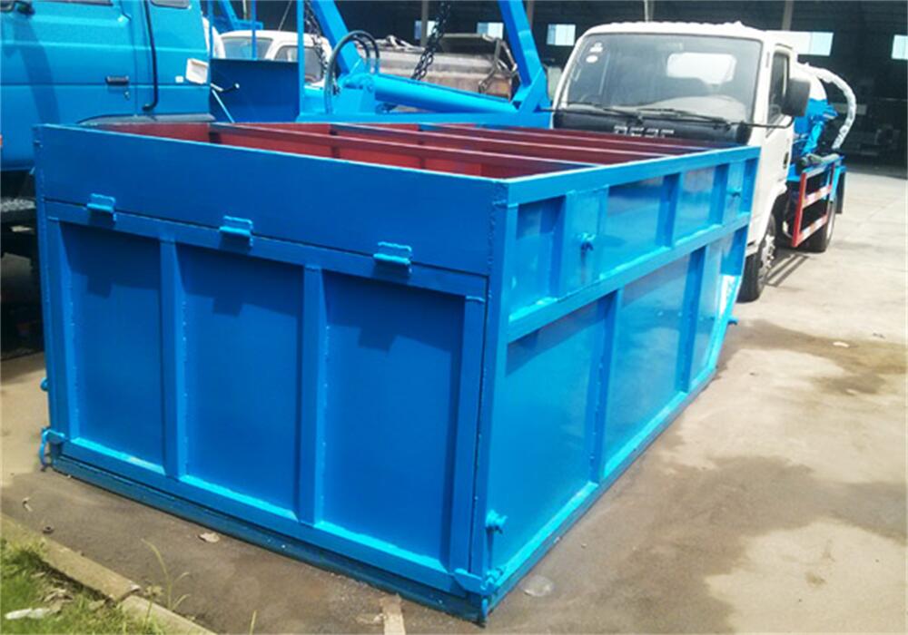 擺臂垃圾箱(斗)可加裝密封蓋,防止泄露飛揚污染,以適應不同環境使用要求,擺臂式垃圾車廣泛適用與城市街道**垃圾處理,適用全國通用垃圾斗,可一車配多個垃圾斗,各個垃圾點放置多個垃圾斗,帶自卸功能,液壓操作。