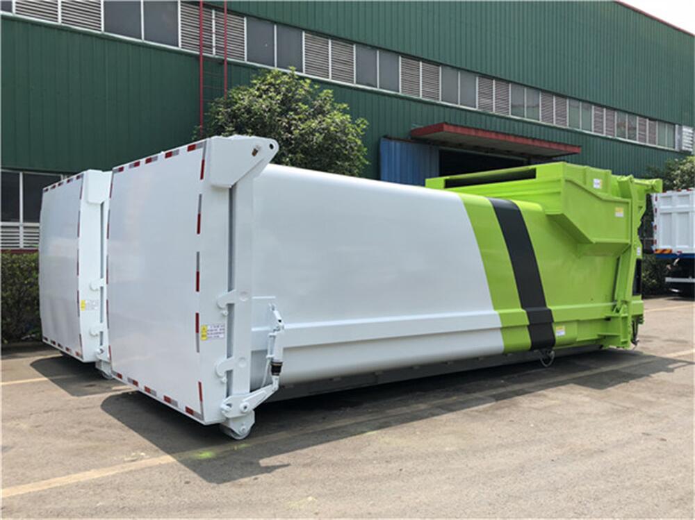 可移動壓縮垃圾箱有叫可移動壓縮垃圾站或叫聯(lián)體壓縮垃圾站,一般情況下移動壓縮垃圾箱**小有6方,8方,10